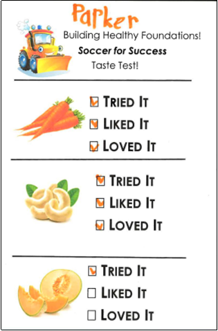 3. Fuel our Bodies! We end each practice with a simple nutrition lesson to discuss the main food groups and the benefits of eating nutritious foods. We eat a simple nutritious snack during the lesson with a Taste Test activity. As our games will be near dinner, we won't do snacks on game nights. We host a fun, healthy meal for our end-of-the-season party.